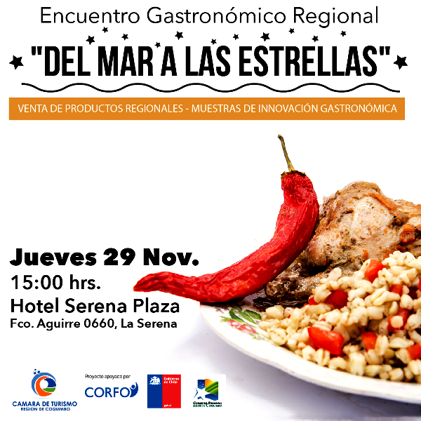 Este jueves 29 de noviembre, a partir de las 15:00 horas en el Hotel Serena Plaza, se realizará la segunda versión del Encuentro Regional de Identidad Gastronómica “Del Mar a las Estrellas”… La entrada es gratuita, con cupos limitados…