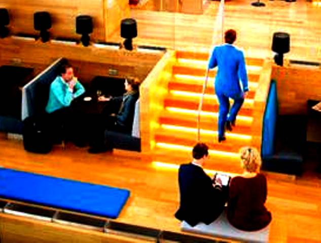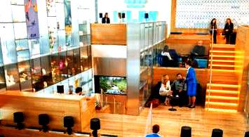 La zona temática Polder, donde los clientes pueden trabajar con comodidad y relajarse al mismo tiempo.