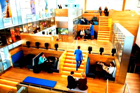 La zona temática Polder, donde los clientes pueden trabajar con comodidad y relajarse al mismo tiempo.