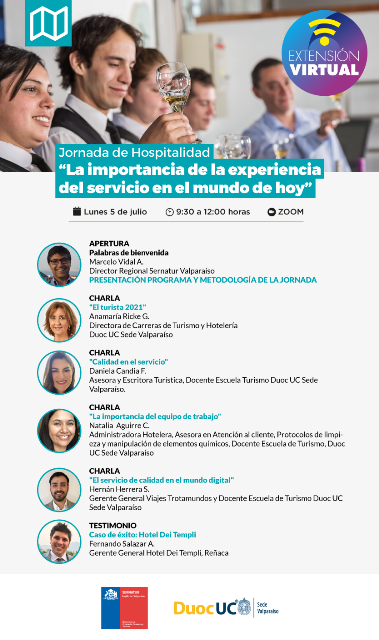 Por este motivo Duoc UC Valparaíso y Sernatur, en una alianza estratégica que busca principalmente empujar con acciones concretas una mejoría a corto plazo y largo plazo del Turismo, han creado una jornada de capacitación para tour operadores, restaurantes, guías, agencias de viajes, encargados de alojamientos y transportes turísticos, entre otros actores, con un marcado foco en la “hospitalidad”, bajo el título “La importancia de la experiencia del servicio en el mundo de hoy”.