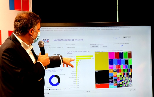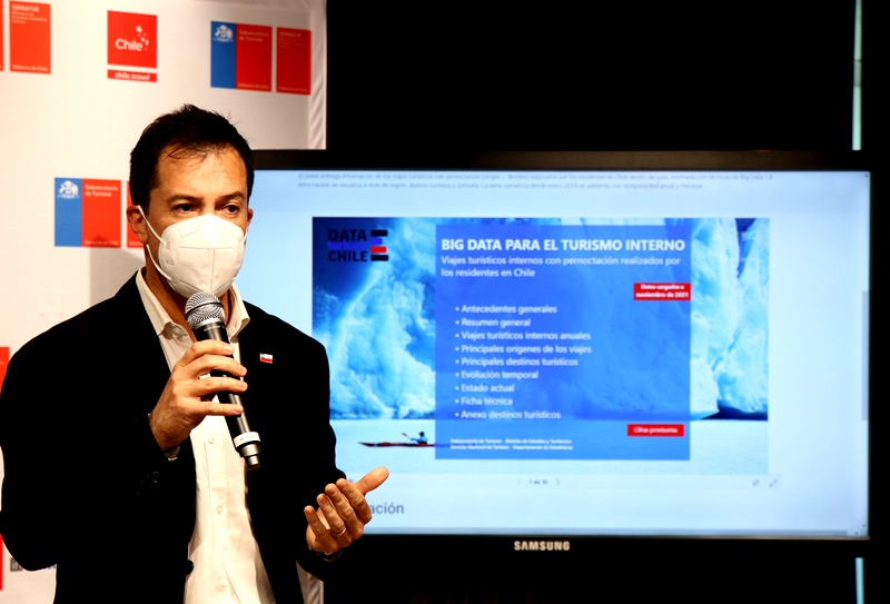 SANTIAGO (Chile), 28 de Enero — 2022.- Por medio de una plataforma de fácil y libre acceso, empresarios y emprendedores del sector, gremios del turismo, municipios, academia, organismos nacionales e internacionales y medios de comunicación, podrán acceder a Big Data Turismo Interno, herramienta que entrega información estadística sobre los viajes que realizan los residentes en Chile por todo el territorio nacional y que estará disponibles las 24 horas del día en www.sernatur.cl/dataturismo.