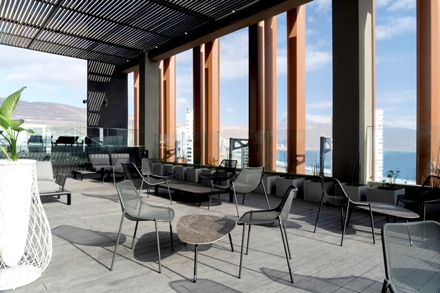 El hotel, ubicado en el centro de la ciudad, y a dos cuadras de la playa Cavancha, cuenta con 134 habitaciones y suites, restaurant, bar, terraza, solárium, fitness center, parking, salas de reuniones y un gran salón de casi 400m2.