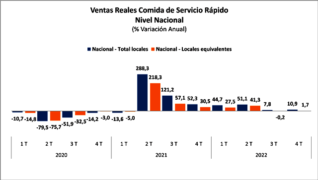 VENTAS DE SERVICIO DE COMIDA RÁPIDA CIERRA EL 2022 CON UN ALZA DEL 24,7%